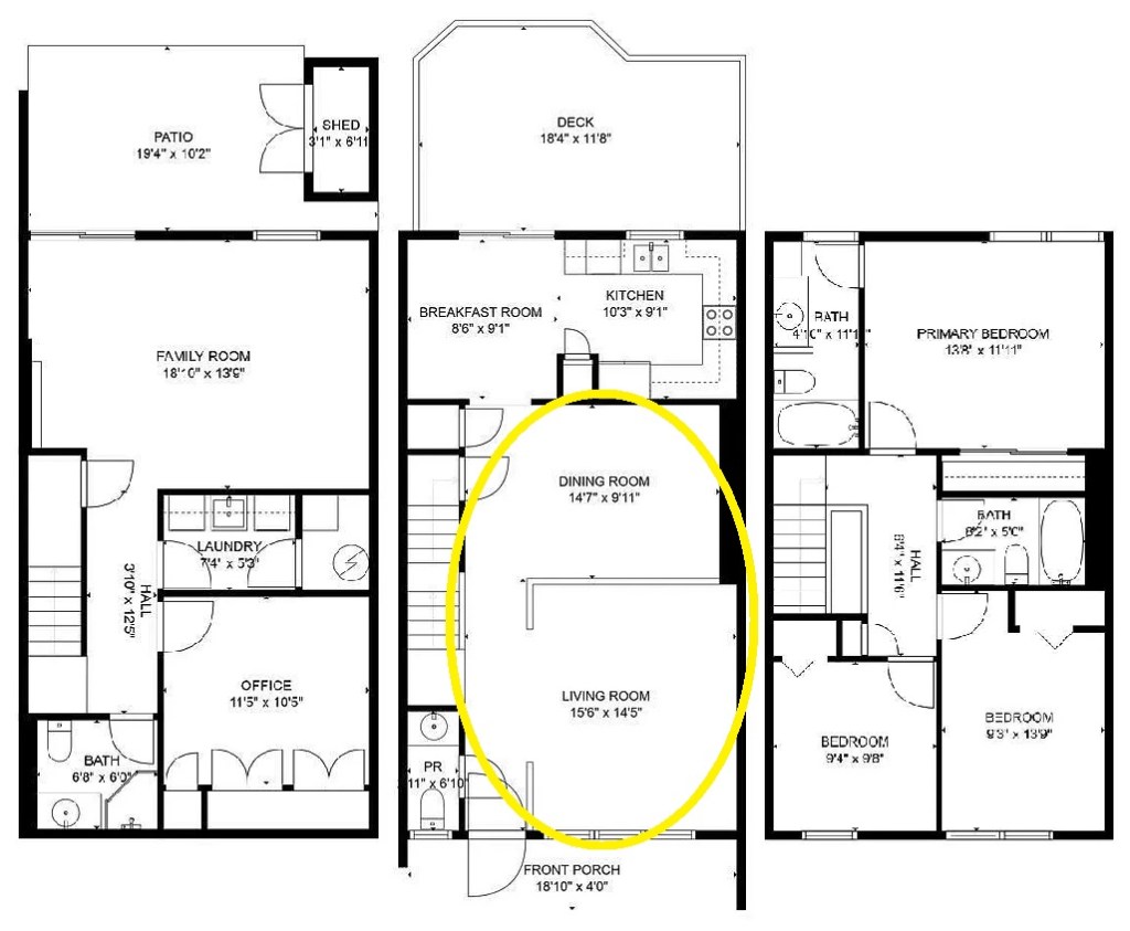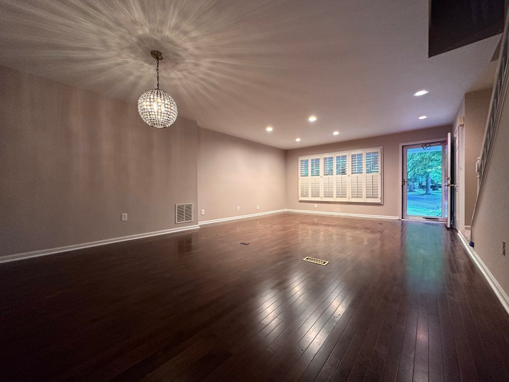 The first order of business was to level-out the sunken living room and update the hardwood floors that were just a tad orange. Originally, that meant refinishing, but upon consultation with the new contractor, that particular type of flooring wasn’t going to handle the requisite patching well, so we decided to replace the floors with a similar model instead. (And this would have been hard to do once there was furniture in there.)
