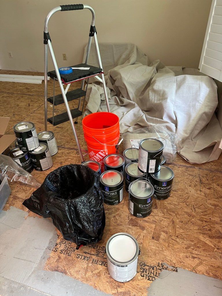 The flooring work only took about a week start-to-finish for my contractor’s merry band. While they weren’t around, my fam and I started painting: