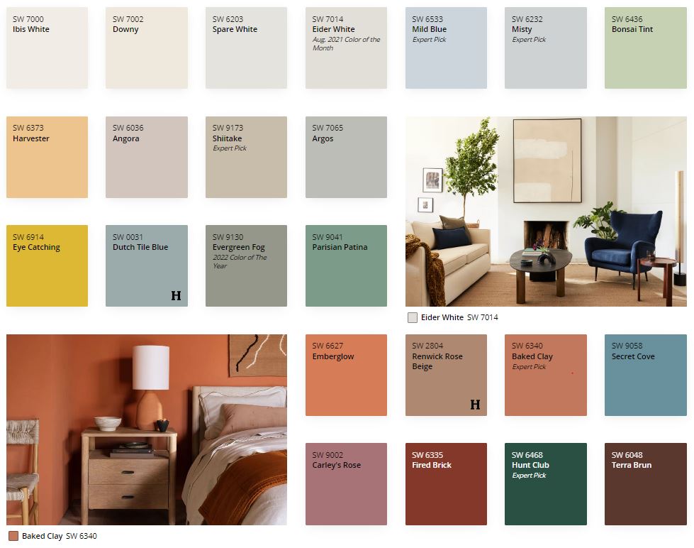 I love F&B and all their inspiration pics, but upon pricing-out a full repaint of the interior, it would have been almost $5,000 just for materials. Considering I had originally budgeted about $2,000 for paint and labor, that plan was scrapped pretty quickly. Since I did still want high-quality paint that would last for however long I live here (so I don’t have to repaint!), I went with Sherwin-Williams Emerald paint. From there, I found a color collection I liked, which was a collab with West Elm: