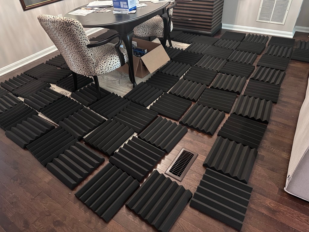 But meanwhile, I had purchased a bunch of acoustic panels during Prime Day, so time to unsquish them all from their packaging and let them acclimate overnight –