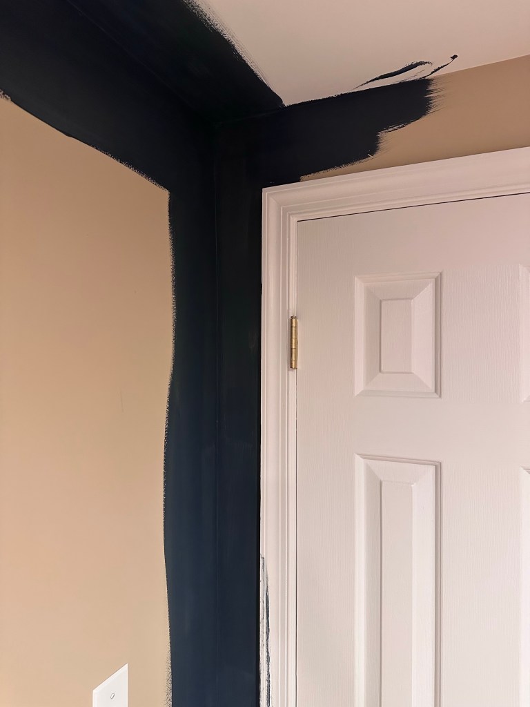 (Those are my painting socks!) I was nervous at this point that I had perhaps overcommitted, and somewhat couldnāt remember why I felt it necessary to go this dark when like, a medium-tone in a flat finish probably would have been fine.