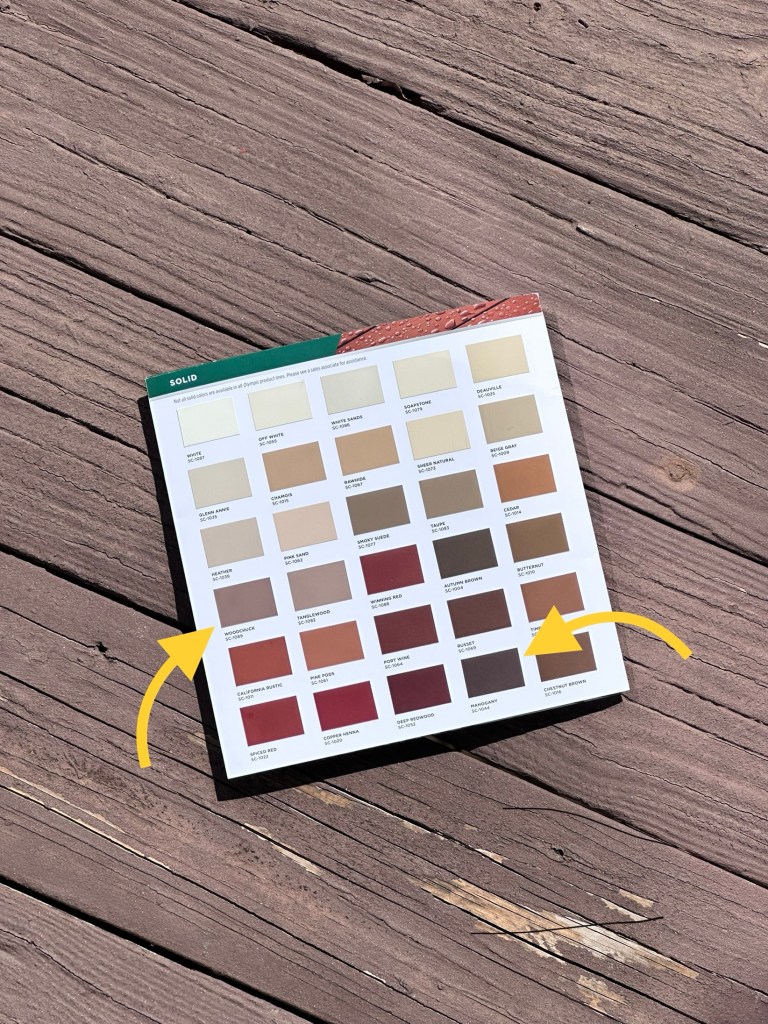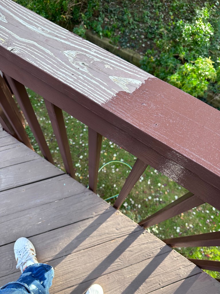 I did feel like the paint colors that went on the deck had very little to do with the chips – even the Mahogany color on the railing, which looked like the chip when I’d get it all over my hands, but then painted on the rail itself it just seemed way lighter. And the deck just looked way pinker or purpler or something. But, c’est la vie.