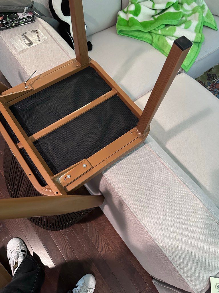 It arrived in four gigantic boxes, and was pretty easy to assemble and then carefully observe from the comfort of my temporarily relocated egg chair: